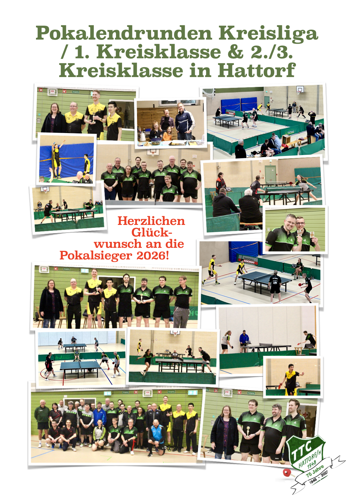 HERZLICHEN GLÜCKWUNSCH AN DIE IV. HERREN ZUR MEISTERSCHAFT!!! Das Titelrennen in der 2. Kreisklasse ist frühzeitig entscheiden - und wie: So früh wie selten ein Team hat sich die IV. Erwachsenenmannschaft des TTC Hattorf uneinholbar den 1. Platz gesichert. Und das, nachdem das Team bereits im Vorjahr Meister in der 3. Kreisklasse geworden war - ein lupenreiner, hoch anzurechnender Durchmarsch also!! Dank einer starken Mannschaftsleistung, und das Team segelt weiter hart am Wind: Auch die Teilnahme an der Pokalendrunde ist so noch möglich.